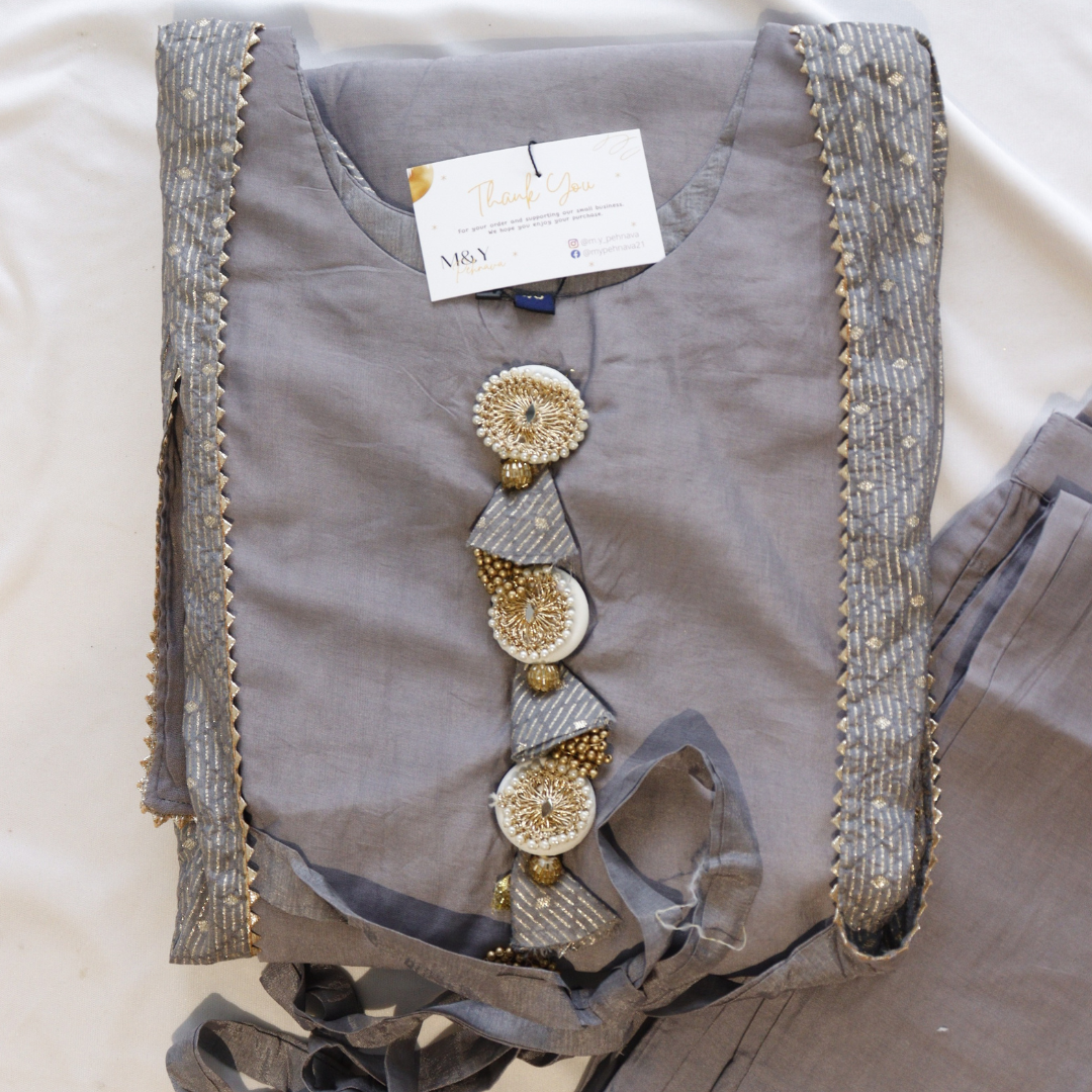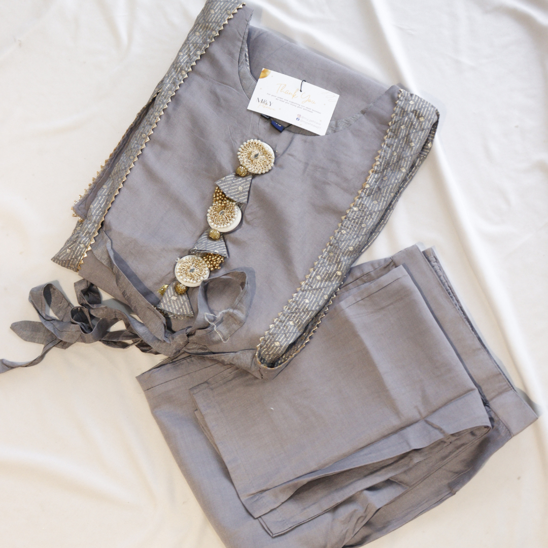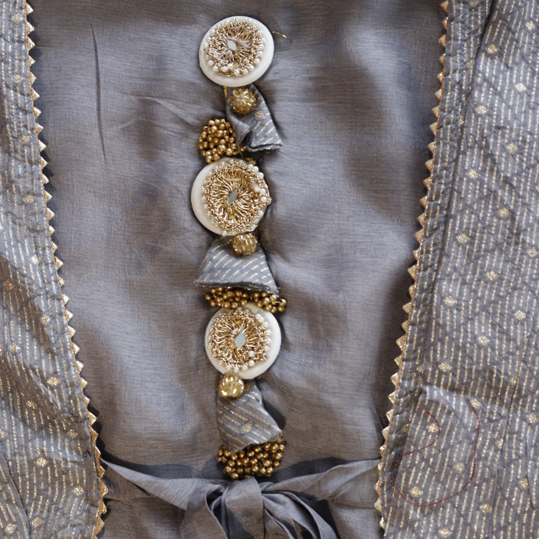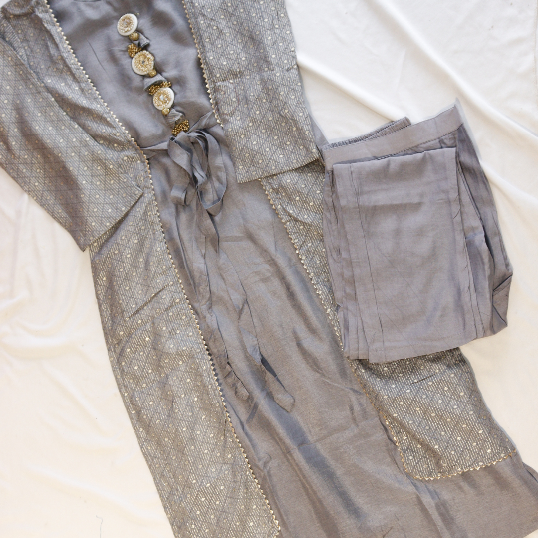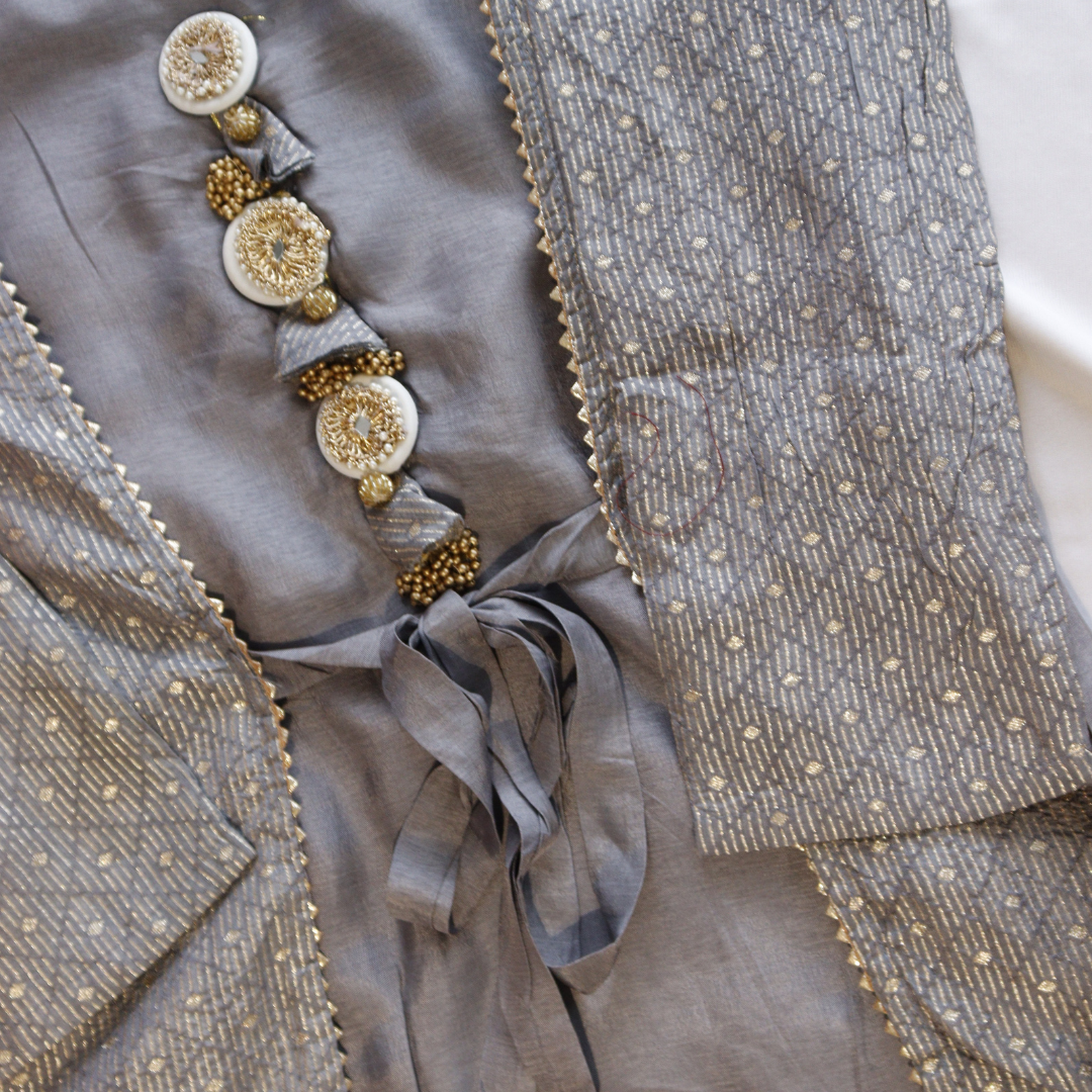 This sophisticated Jacket Style Grey Kurta Set gives off a modern and stylish look. Crafted from the finest fabrics, it ensures maximum comfort and durability. Featuring a neat design with a unique pattern, this set is the perfect addition to your wardrobe.