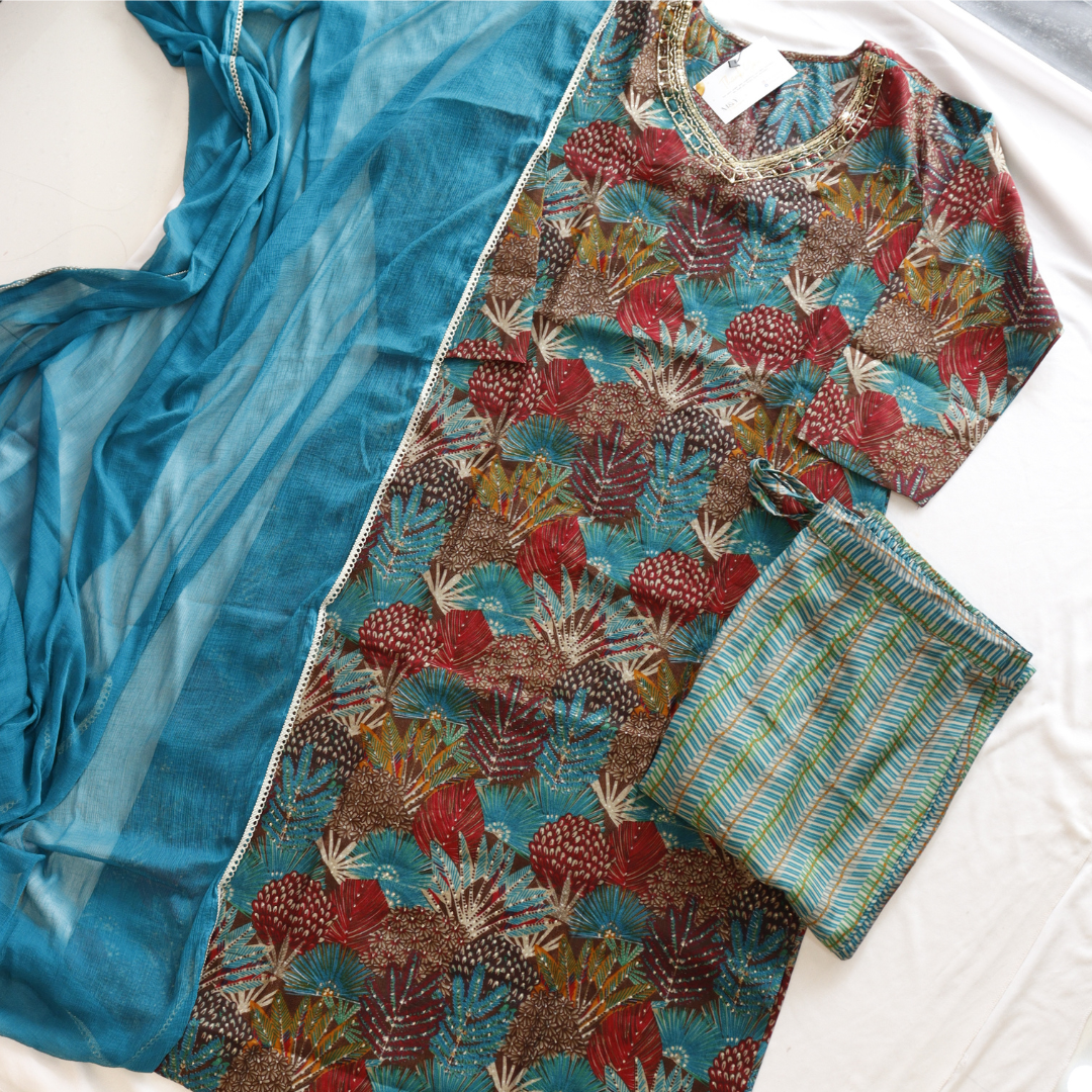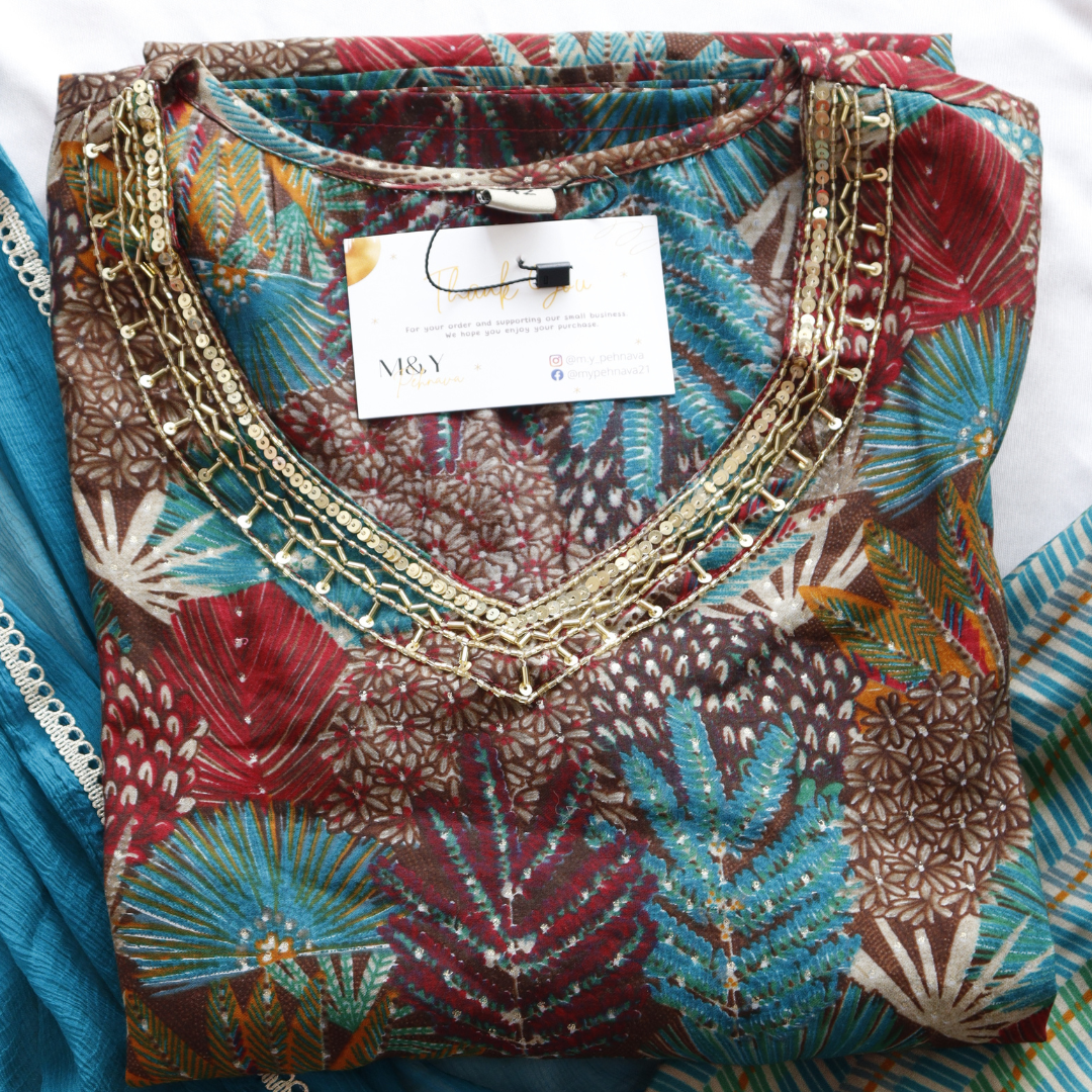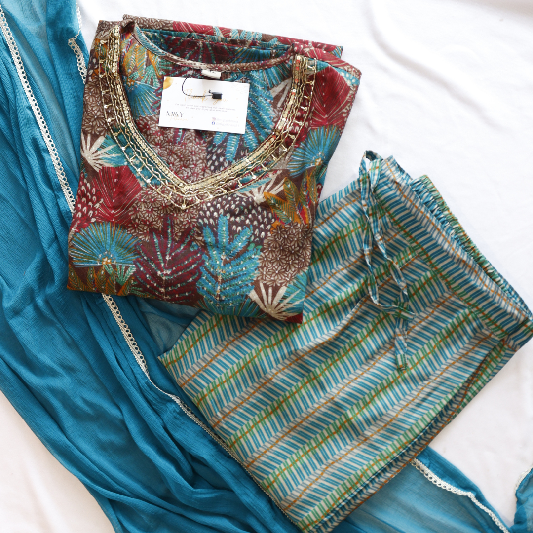 This stylish Muslin V Neck Beads Work Suit Set is made of lightweight yet durable muslin fabric, perfect for making a statement while staying comfortable. Featuring intricate beading along the v-neckline, this suit set is designed for maximum breathability, stylish elegance, and long-lasting wear. Perfect for formal occasions and everyday wear.