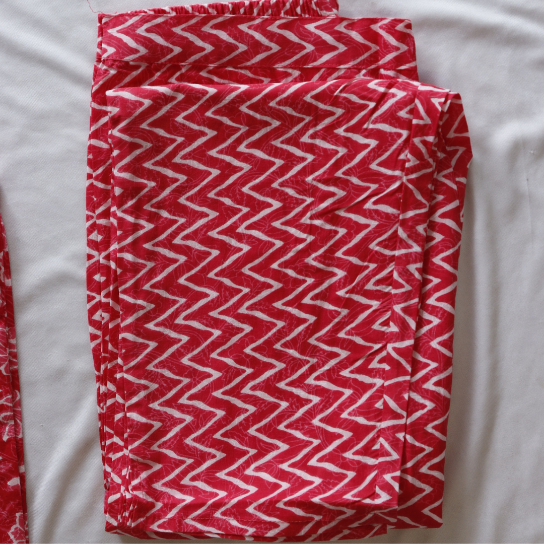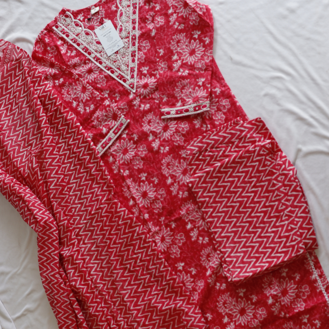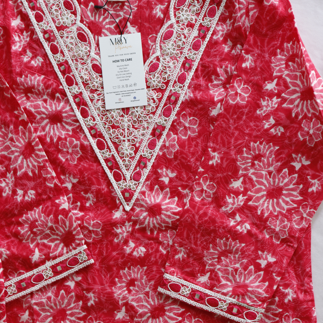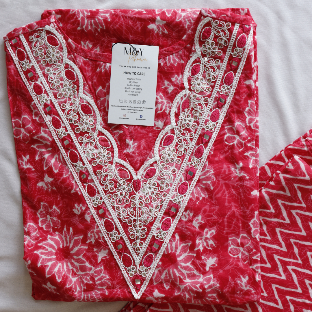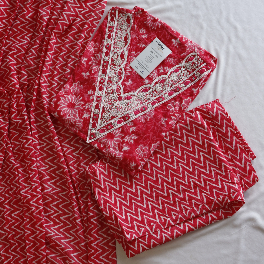 Angrakha Cherry Red Cotton Suit Set - M&Y Pehnava