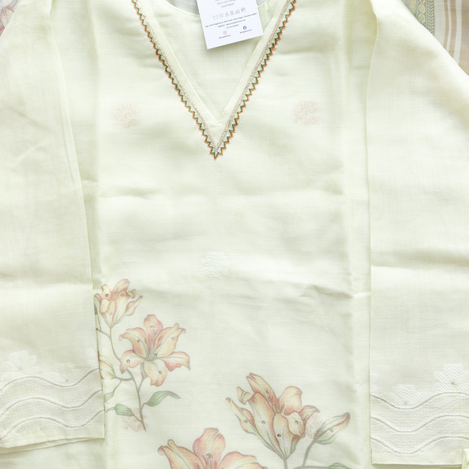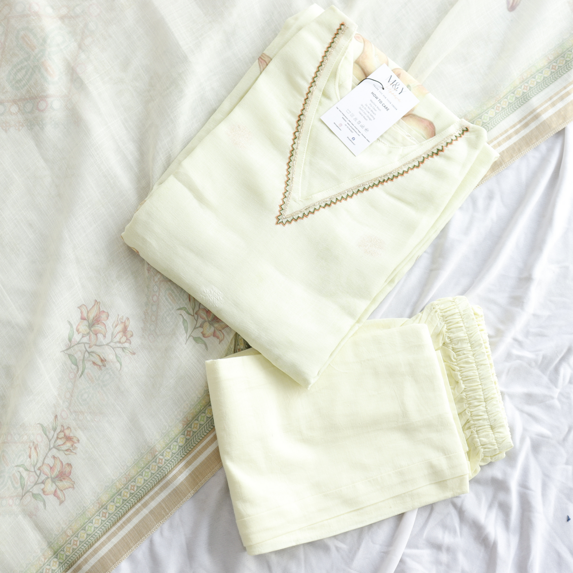 Experience the elegance of traditional craftsmanship with this Pure Chanderi Cotton Suit Set. Crafted from lightweight, breathable Chanderi cotton, it offers exceptional comfort and durability, ideal for warm climates. The fabric’s natural sheen and fine texture enhance its sophisticated appeal, making it perfect for both casual and formal occasions. This suit set combines heritage artistry with modern wearability, ensuring you look refined while enjoying all-day ease.