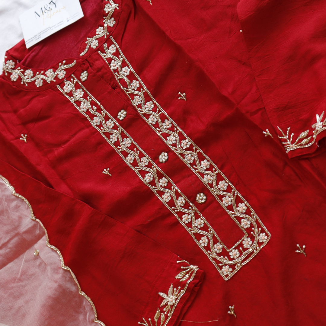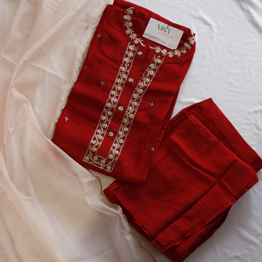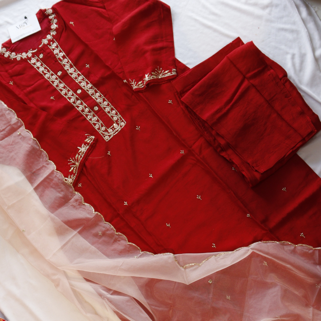 Red with peach Dupatta Suit Set