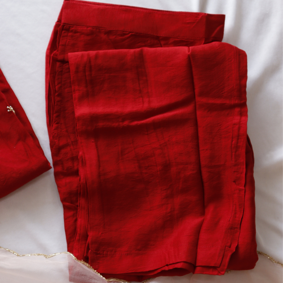 Angrakha Cherry Red Cotton Suit Set