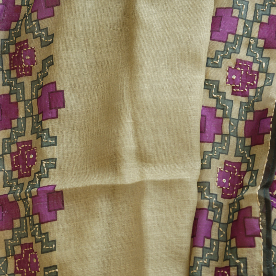 Experience the artistry of traditional Kantha embroidery with our Kantha Work Unstitched Hand Embroidered Suit Set. Handcrafted by skilled artisans, this set boasts intricate hand embroidery that adds a stunning touch to any outfit. Made with high-quality fabric, it is perfect for any occasion and offers a unique blend of style and cultural heritage.