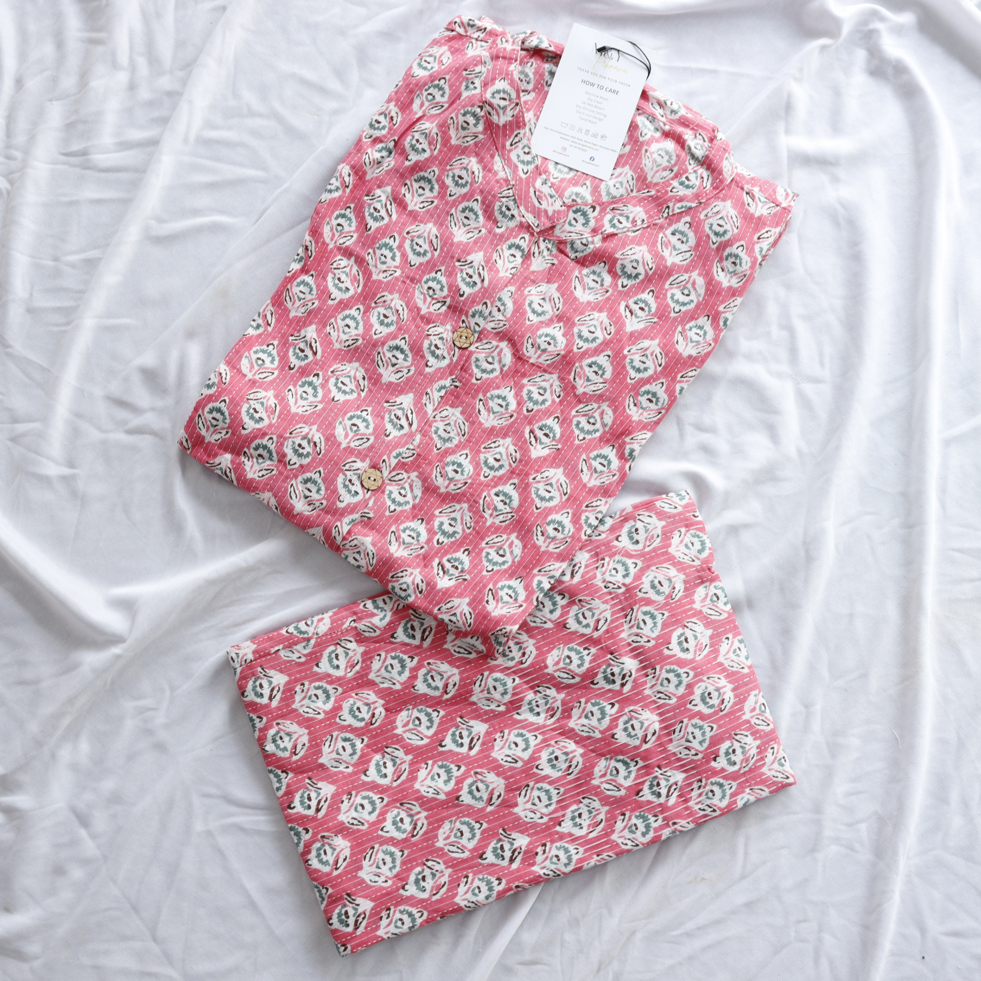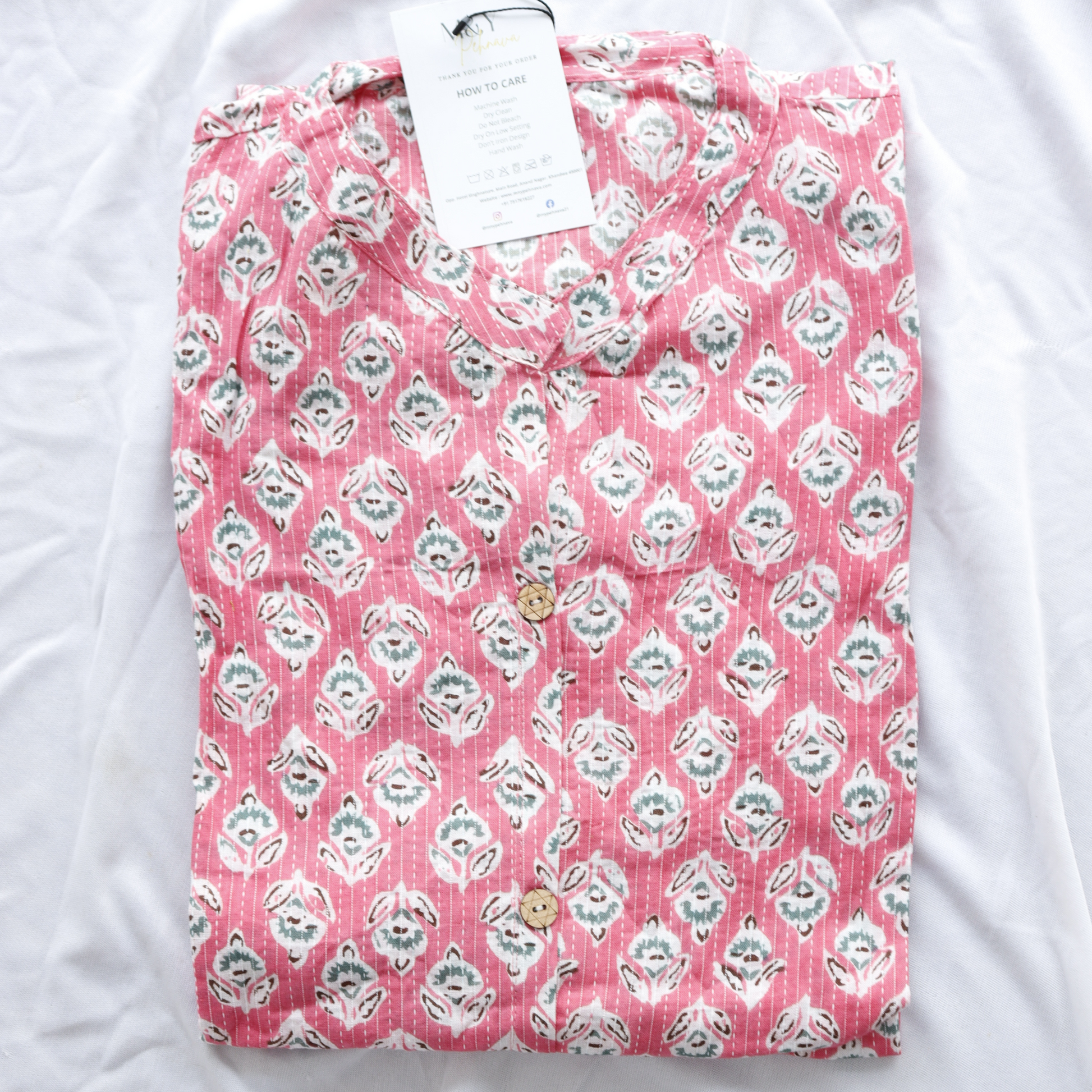 Elevate your wardrobe with the Pink Kantha Work Co-Ord Set, featuring intricate hand-stitched Kantha embroidery that showcases traditional craftsmanship. This coordinated ensemble offers both style and comfort, making it ideal for festive occasions or elegant casual wear. The delicate pink hue enhances its feminine appeal, while the breathable fabric ensures all-day ease. Perfectly balanced between heritage artistry and contemporary design, this set is a refined choice for those who appreciate expert detailing and timeless elegance.