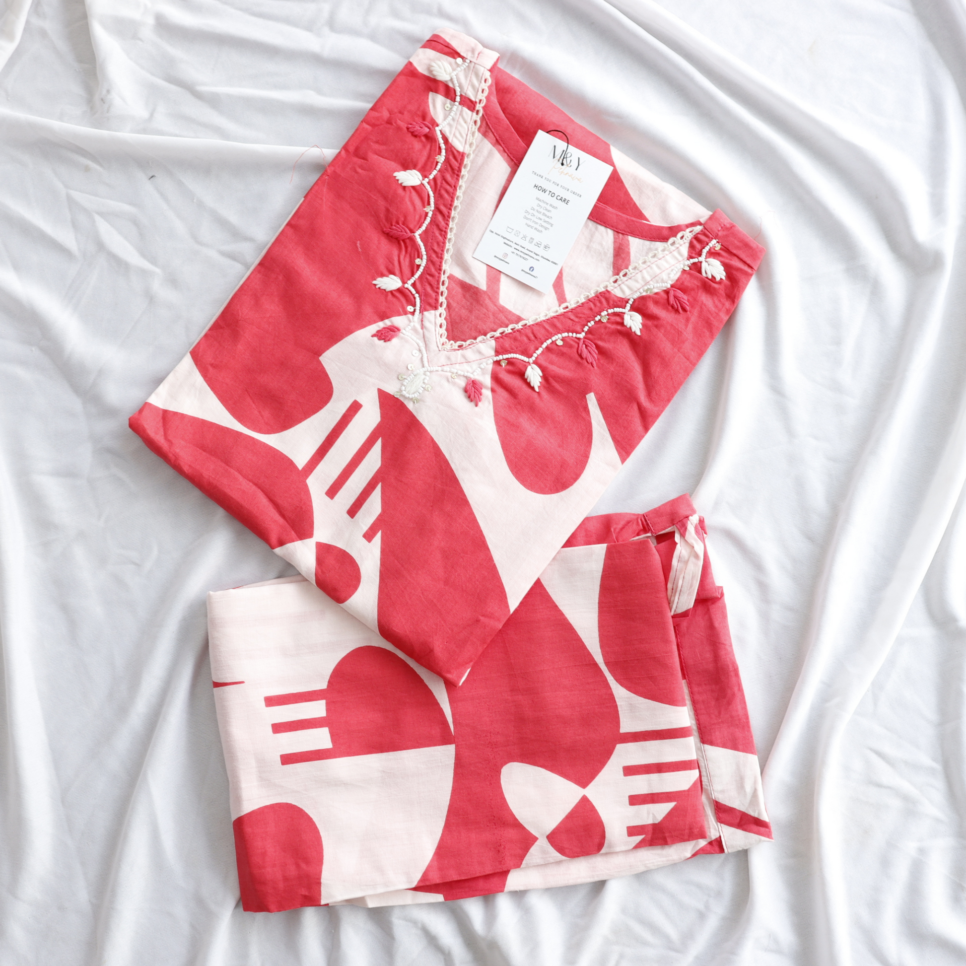 Elevate your wardrobe with this Pink Printed Co-Ord Set, expertly designed for a cohesive and stylish look. Crafted with attention to detail, the set features a vibrant pink print that adds a fresh, contemporary touch. Perfect for both casual outings and semi-formal occasions, it offers comfort without compromising on style. Pair the coordinated pieces effortlessly for a polished appearance that reflects refined taste.