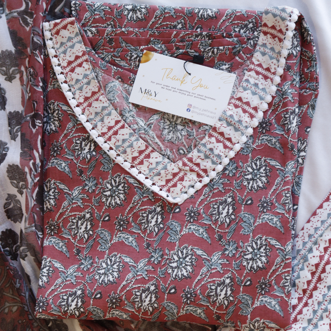 This beautiful Pure Cotton Block Print Suit Set is made of high-quality material for a soft, lightweight feel. The block print design adds a contemporary twist to traditional Indian clothing for a unique look. The breathable fabric provides optimum comfort and the set will be a perfect addition to your wardrobe.